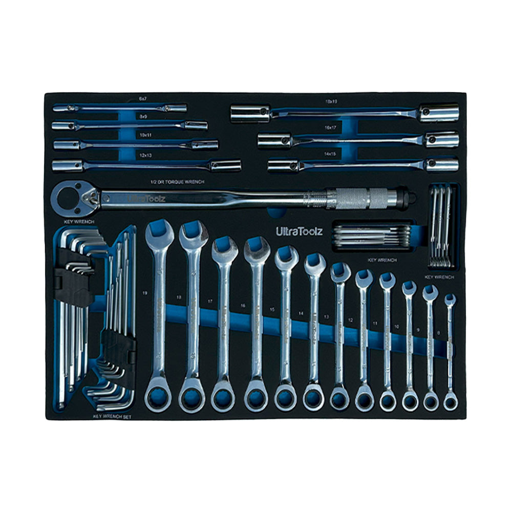 - Szuflada 3: Klucze grzechotkowe i klucz dynamometryczny